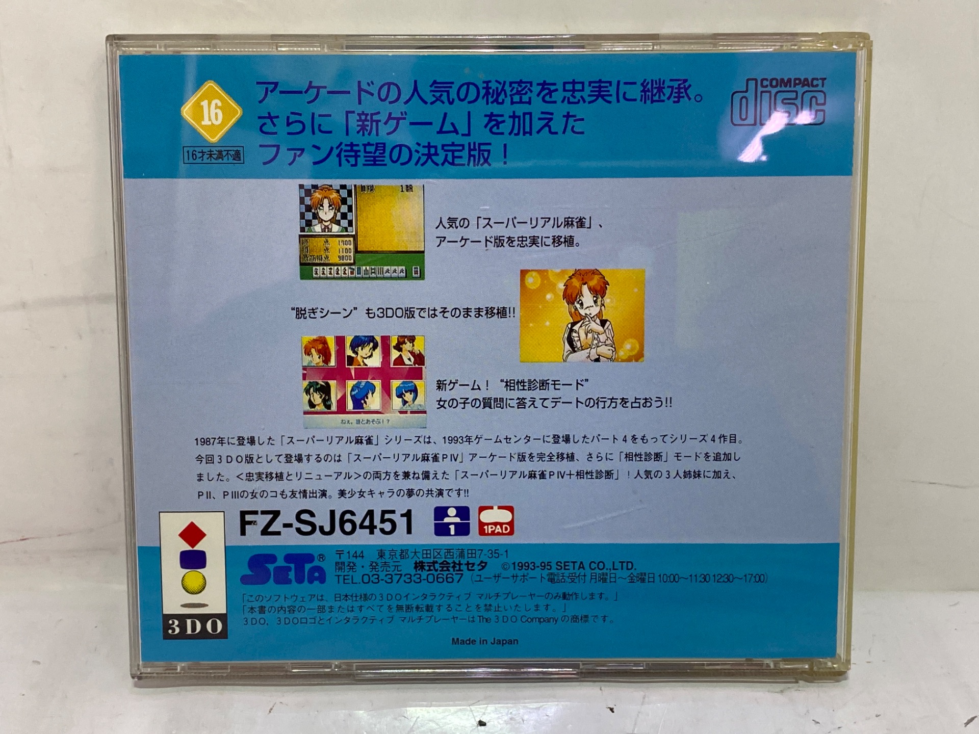 3DO用ソフトスーパーリアル麻雀PⅣ+相性診断