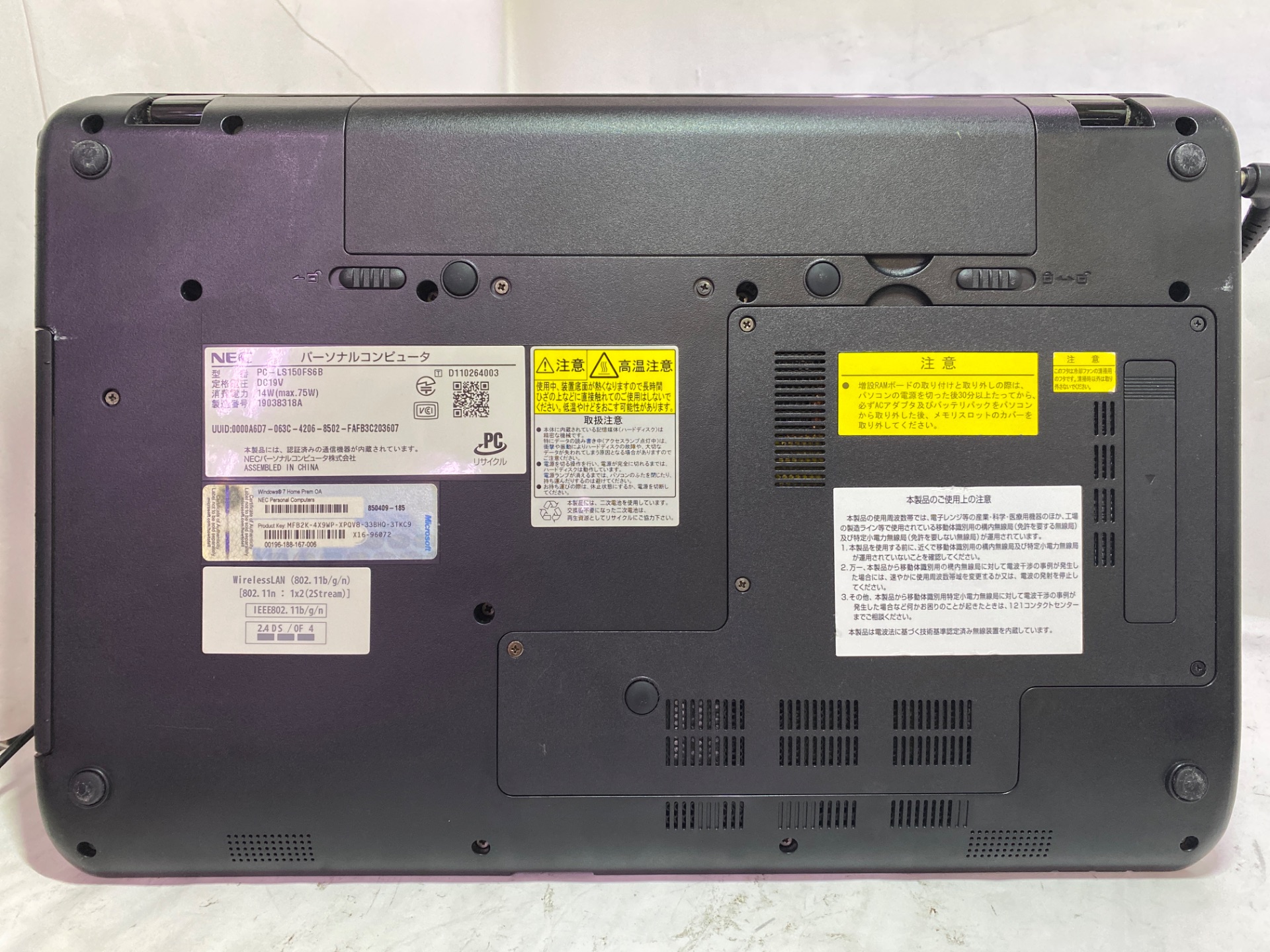 [特記] ●動作確認済み、Win7インストール済み ■保証なし、バッテリーNG、天板に傷とコーティングハゲあり ●OS Ver Win7 RTM ●バッテリーレポート 7502 mWh / 30960 mWh (24%)